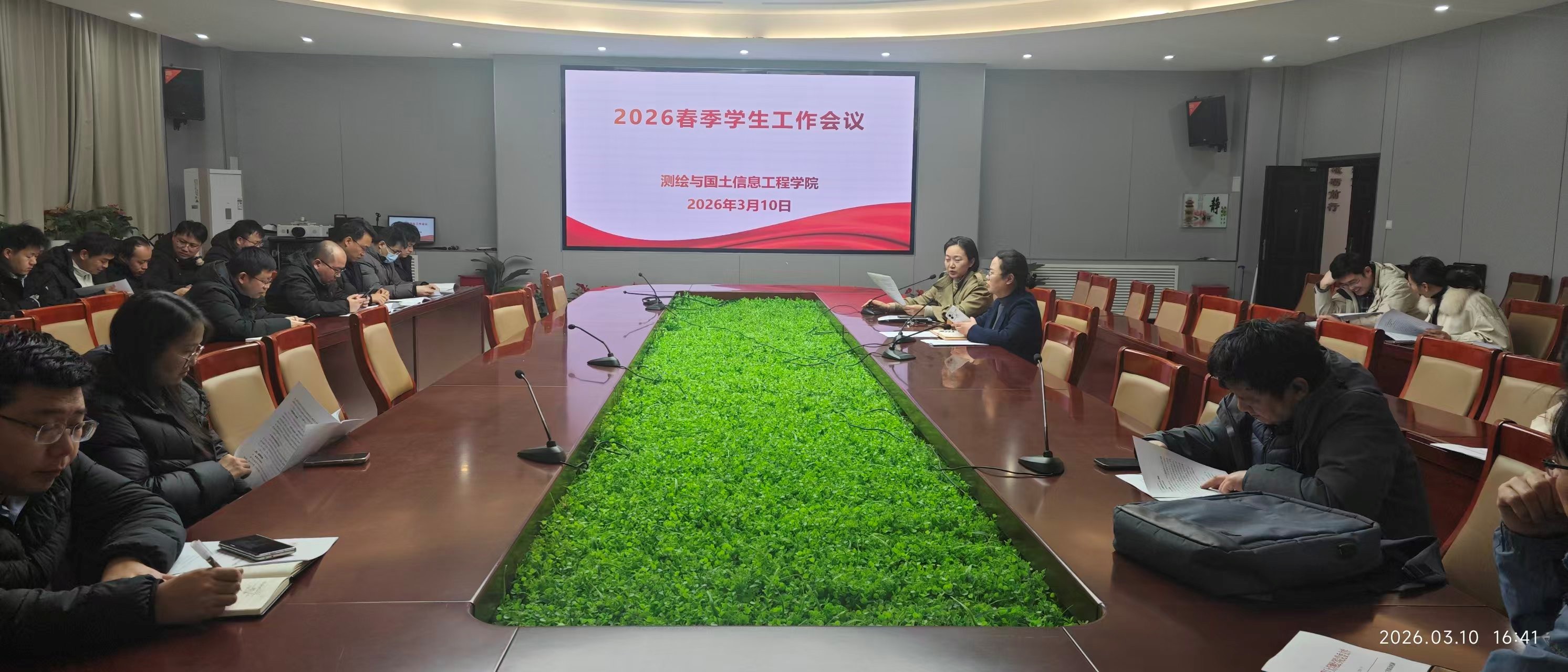 在院楼101会议室召开2026年春季学生工作会议。学院领导班子、全体班主任、学业导师及辅导员参加会议,围绕新学期学生工作的重点任务进行专题研讨与部署。