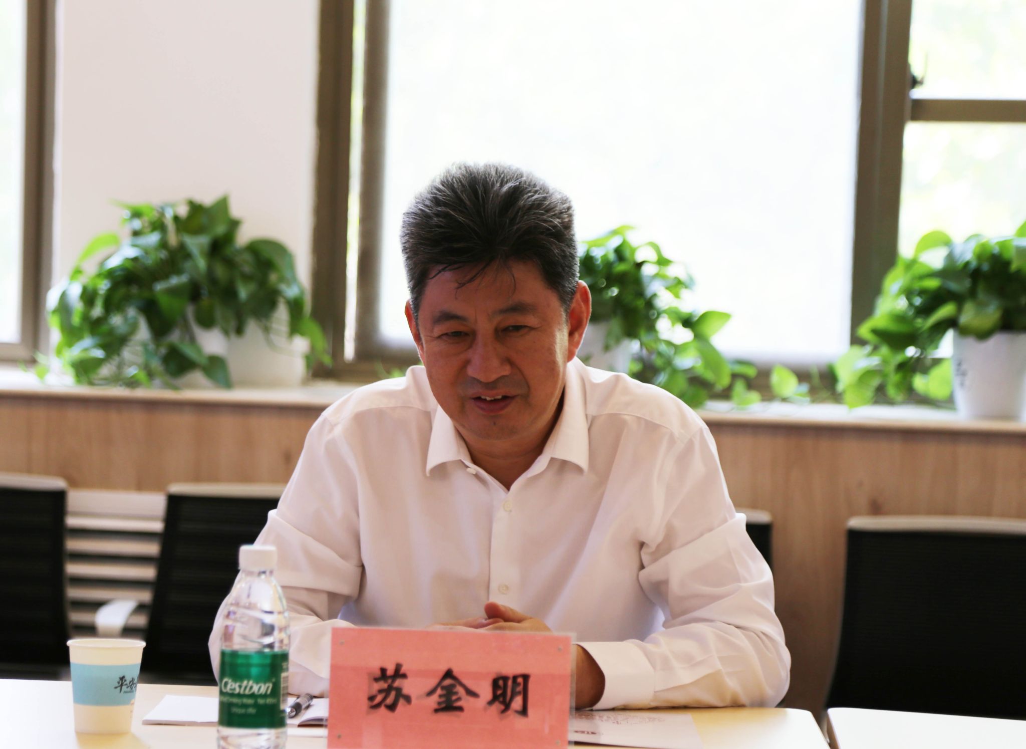 袁占良对苏金明等一行的到来表示欢迎,并简要介绍了学院在专业设置、人才培养、科学研究以及一流学科创建方面的成就。他表示,校友是学校发展的宝贵财富和力量源泉,希望以本次交流为契机,深化校局合作,携手开创共赢发展新局面。