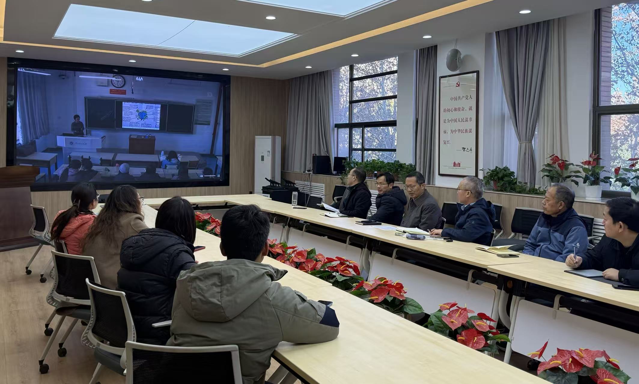 督导组全体成员在221会议室组织开展线上集中督导听课,活动由副院长何荣主持。